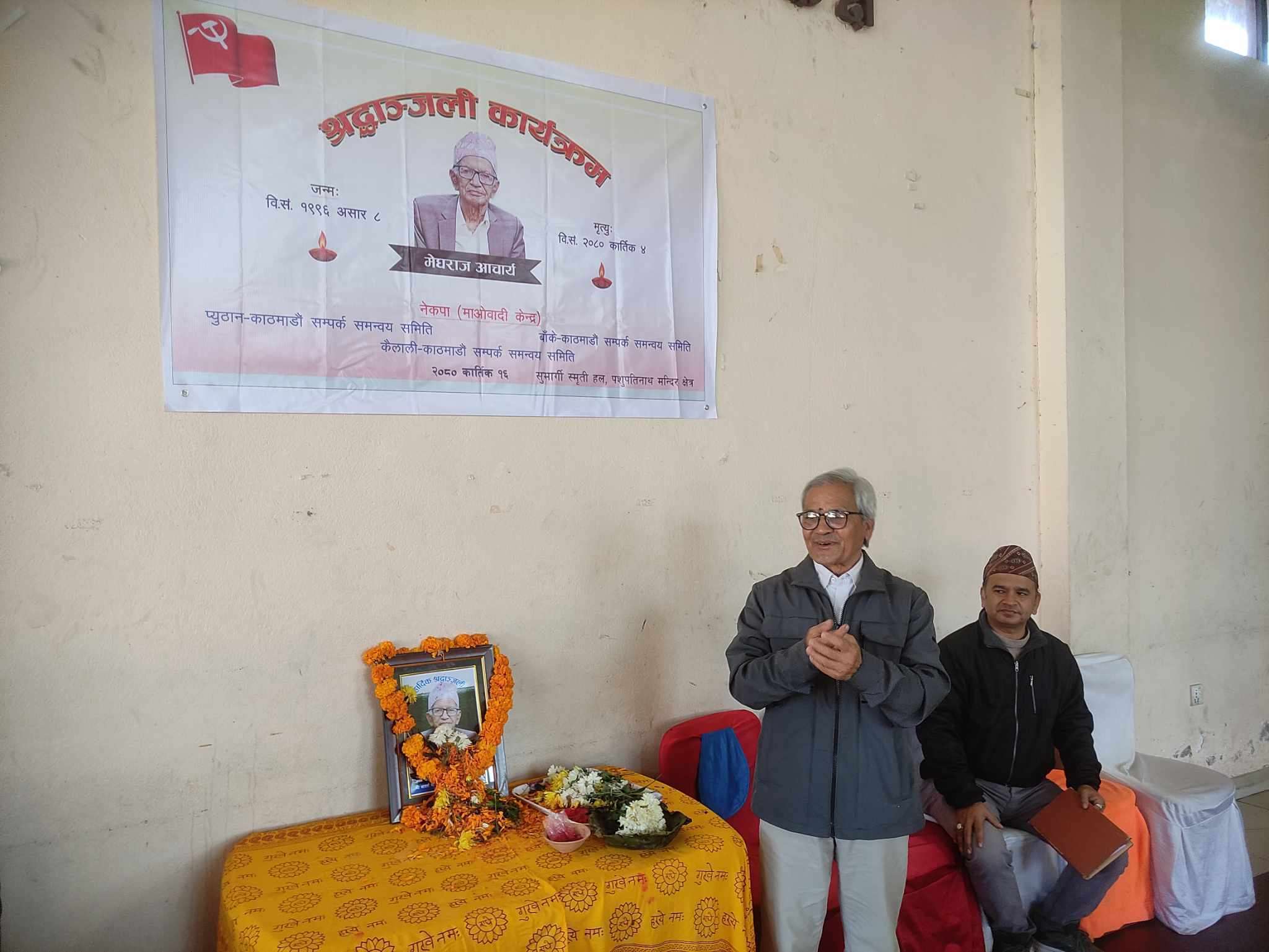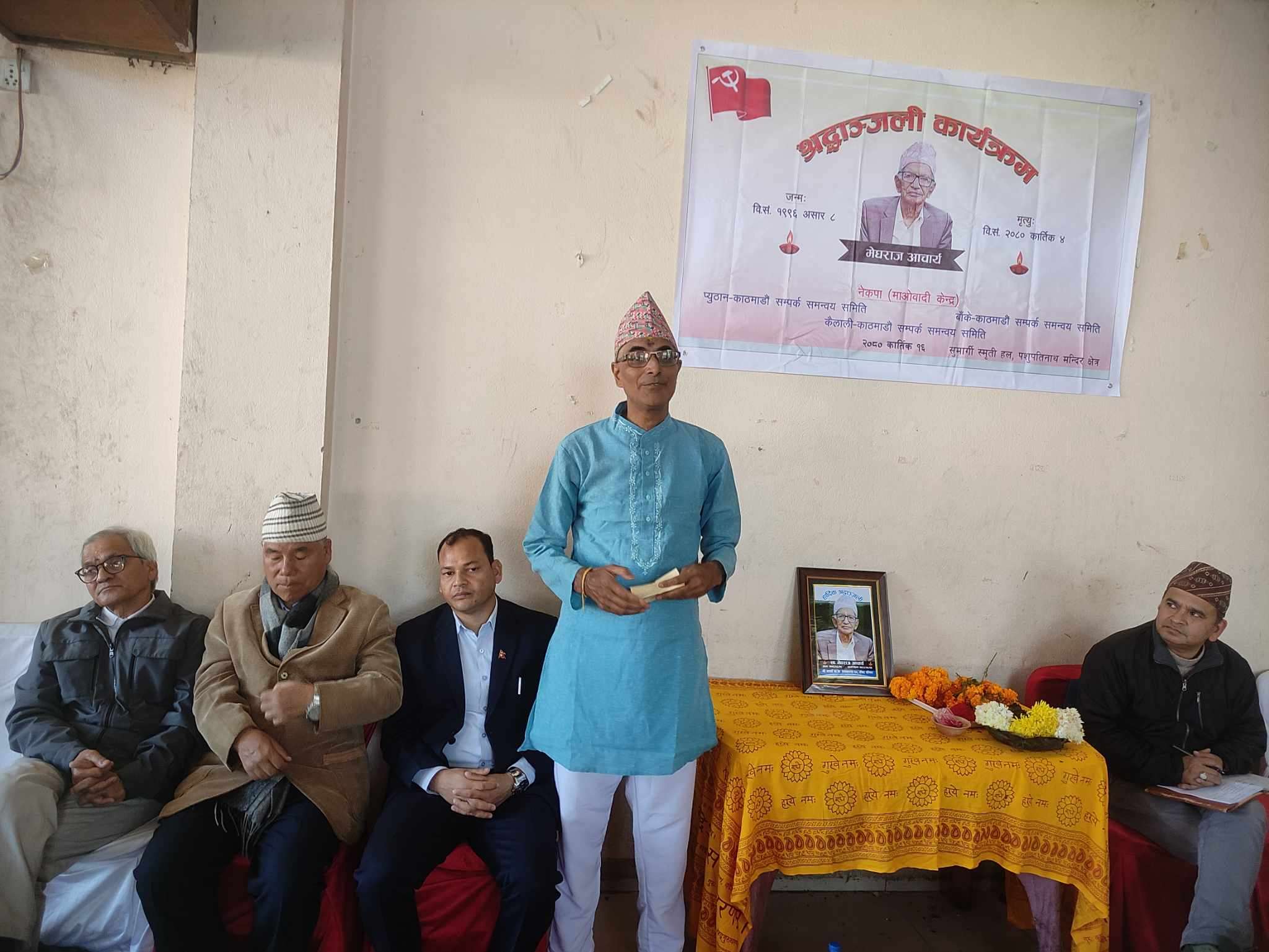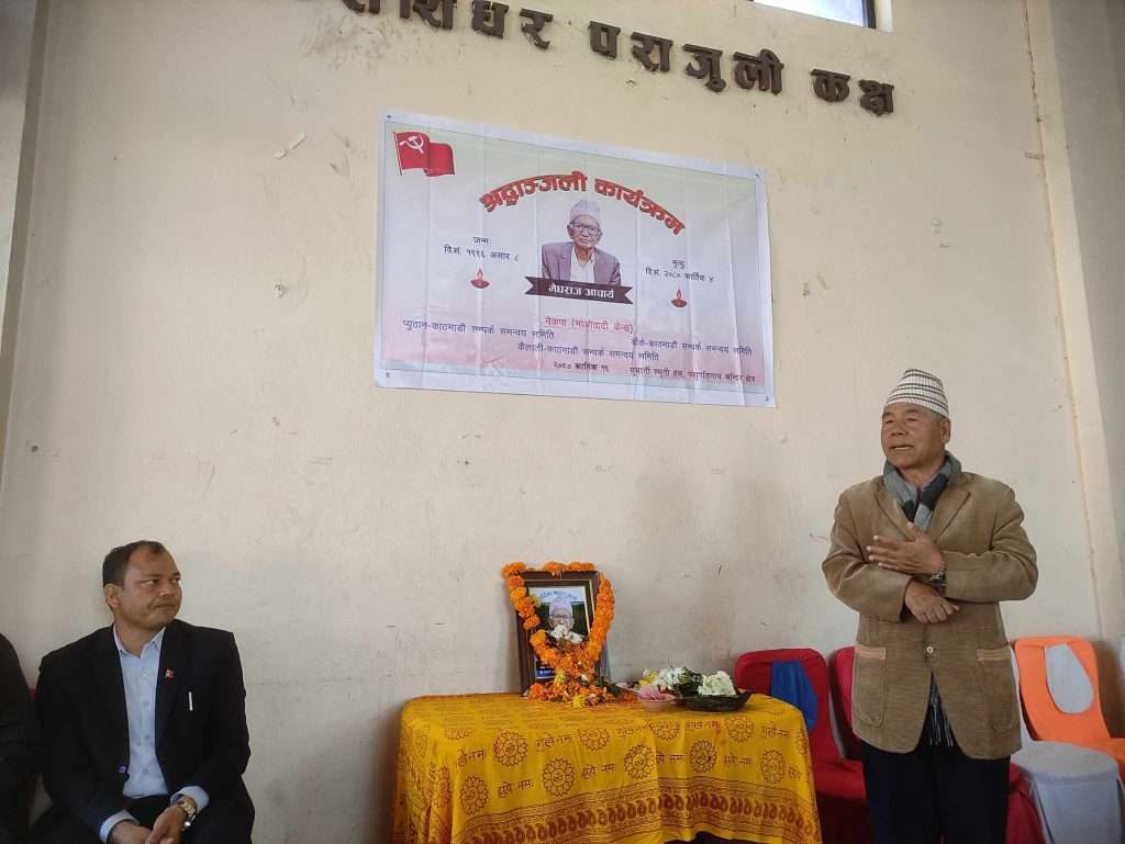 एउटा असल मानिसको मृत्युले सबैलाई शोकाकुल बनायो । पुराना कम्युनिस्ट नेता मेघराज आचार्यको मृत्युको १३औँ दिनको श्रद्धाञ्जली कार्यक्रम चलिरहेको थियो । कार्यक्रममा उपस्थिति सबैको एउटै भनाई थियो, ‘हामीले असल नेता, अभिभावक र शिक्षक गुमायौ ।’