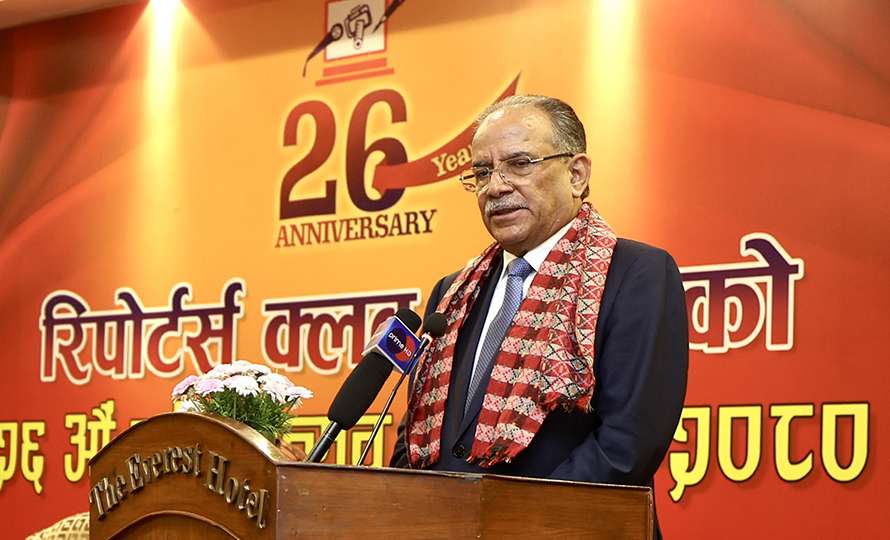 रिपोटर्स क्लबको २६ औँ वार्षिकोत्सवका अवसरमा शनिबार आयोजित कार्यक्रमलाई सम्बोधन गर्दै प्रधानमन्त्री दाहालले सूचनाको हक एवं प्रेस स्वतन्त्रताको पूर्ण ‘ग्यारेन्टी’ गर्नेगरी आवश्यक संरचना र पूर्वाधार तयार गर्न सरकार लागिपरेको बताए ।